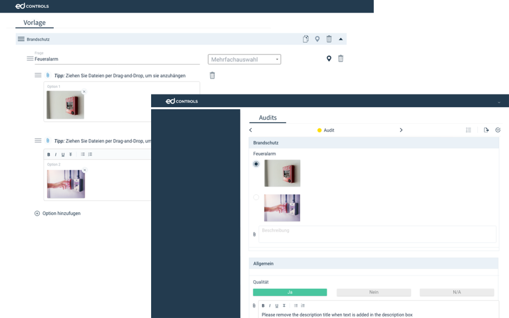 Es ist nun möglich, visuelle Elemente als Antwortmöglichkeiten im Audit-Template hinzuzufügen. Mit diesem Update möchten wir den Nutzern ein umfassenderes Werkzeug bieten und sicherstellen, dass der Audit-Prozess so informativ und genau wie möglich ist.