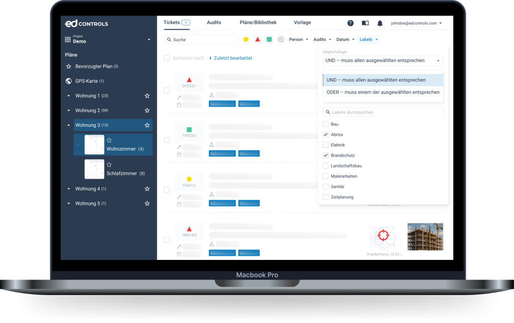 Verwenden Sie mehrere Filter gleichzeitig? Jetzt können Sie selbst entscheiden, wie Ed Controls diese kombiniert. Mit den neuen UND/ODER-Filtern bestimmen Sie, ob Sie breiter oder gezielter in Ihren Tickets und Audits suchen.
